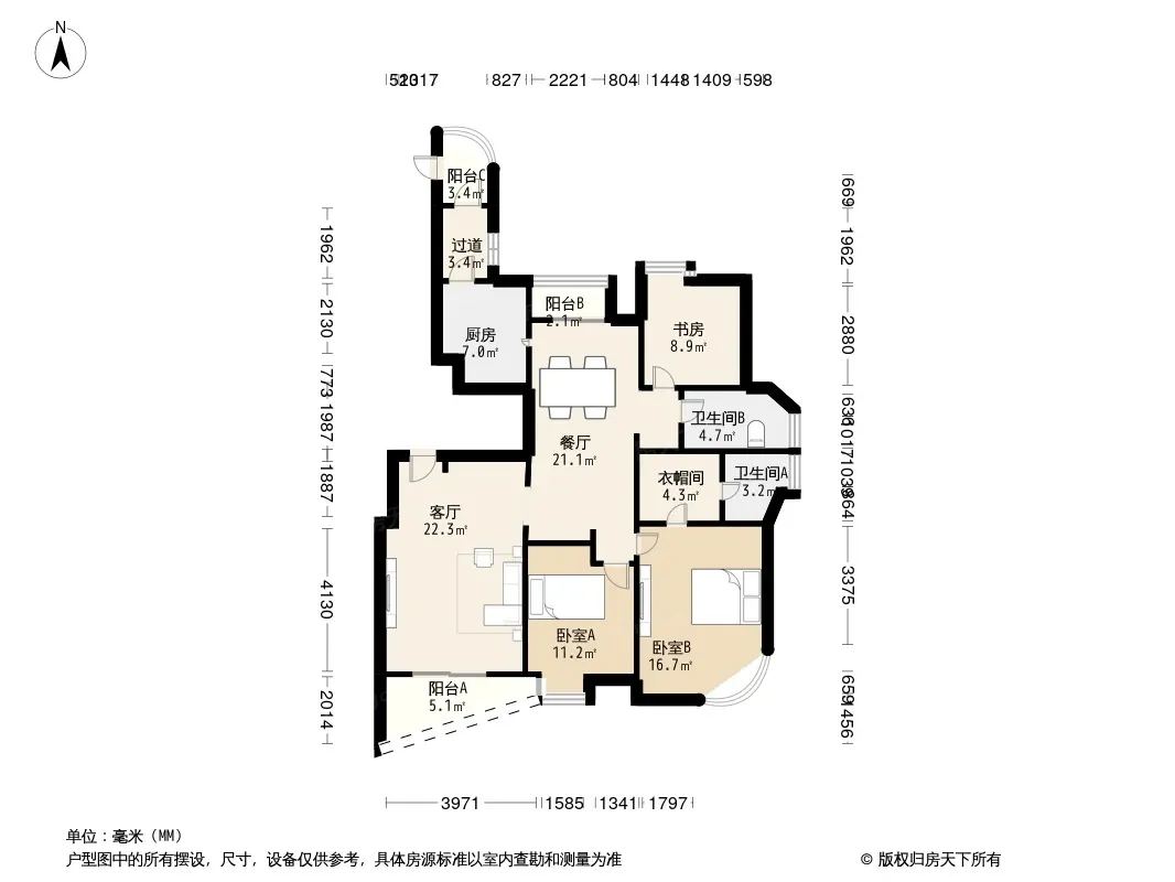 户型齐全,主打户型方正,明厨,独立衣帽间三居