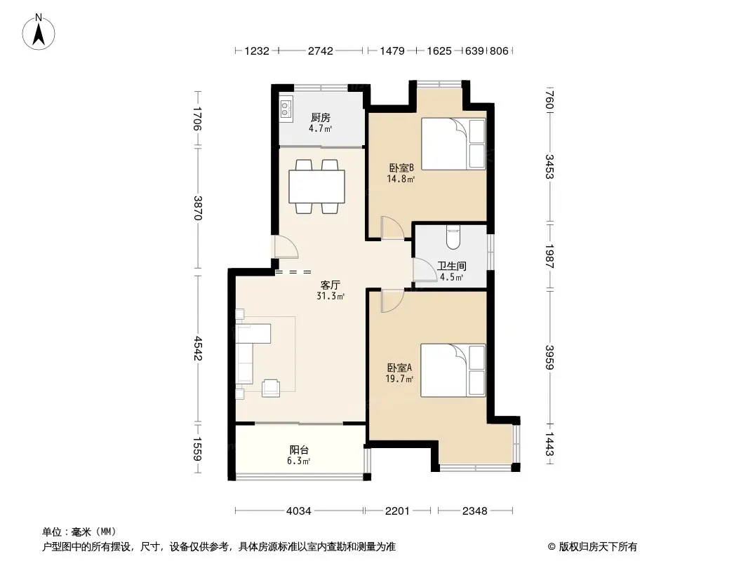 户型齐全,主打户型方正,明卫,明厨,双卧朝南三居