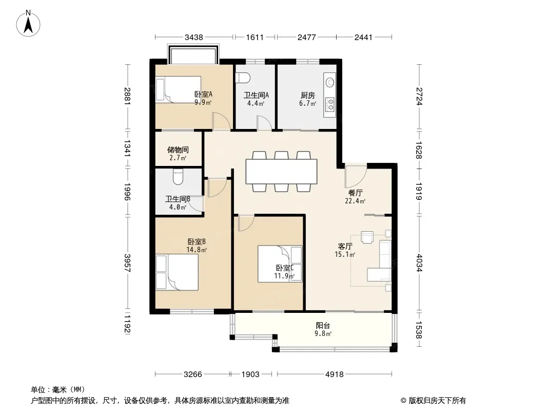 户型齐全,主打户型方正,明厨,双阳台三居