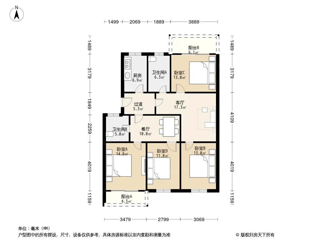 户型齐全,主打户型方正,明卫,明厨,客厅朝南四居