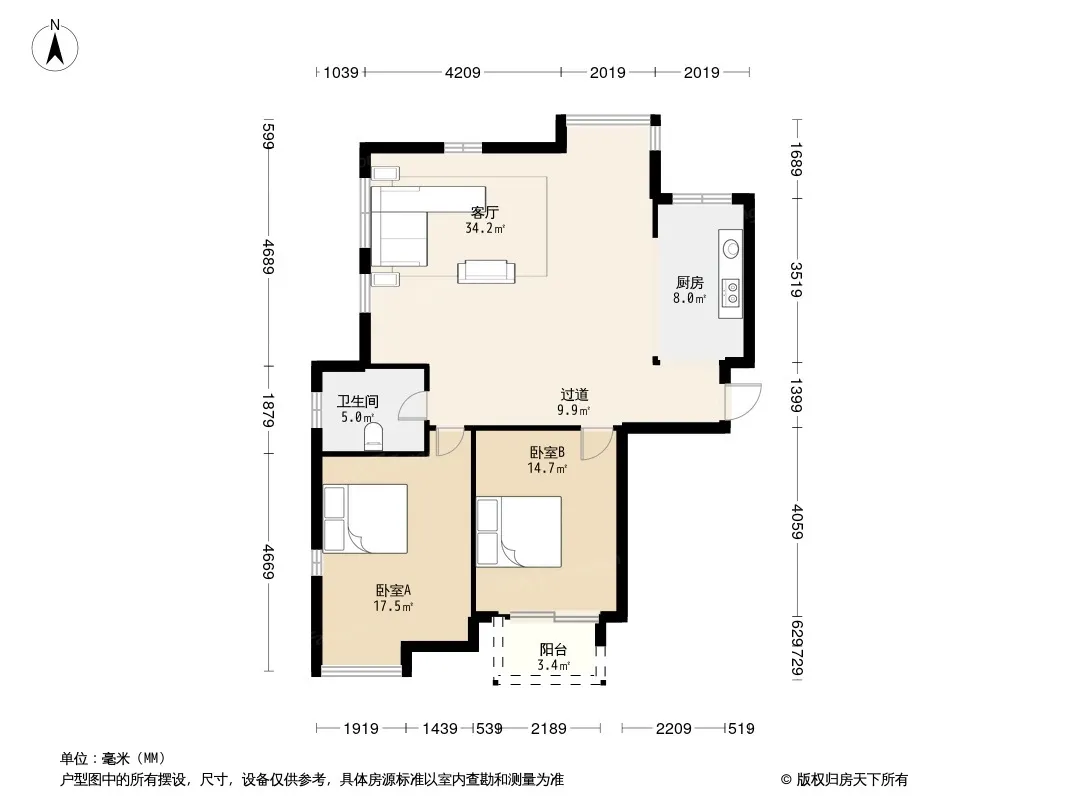户型齐全,主打户型方正,明卫,明厨,客厅朝南,主卧朝南三居