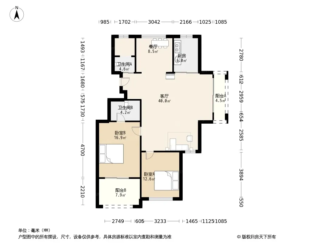 户型齐全,主打户型方正,明厨,客厅朝南,双阳台三居