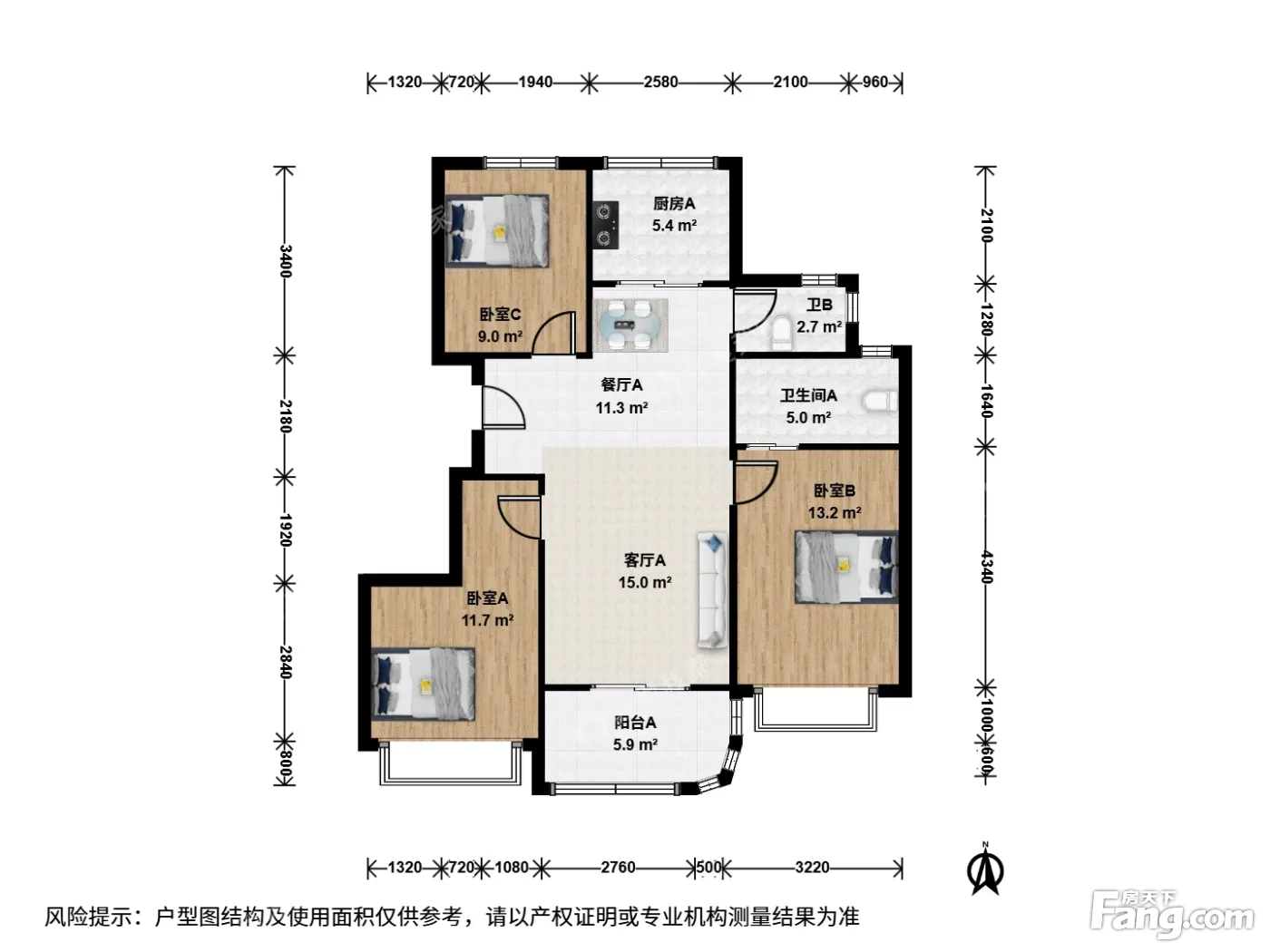 3室1厅2卫