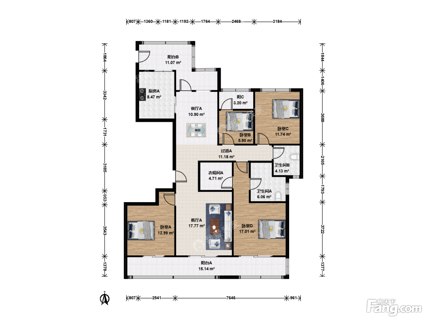 户型齐全,主打户型方正,明卫,双阳台四居