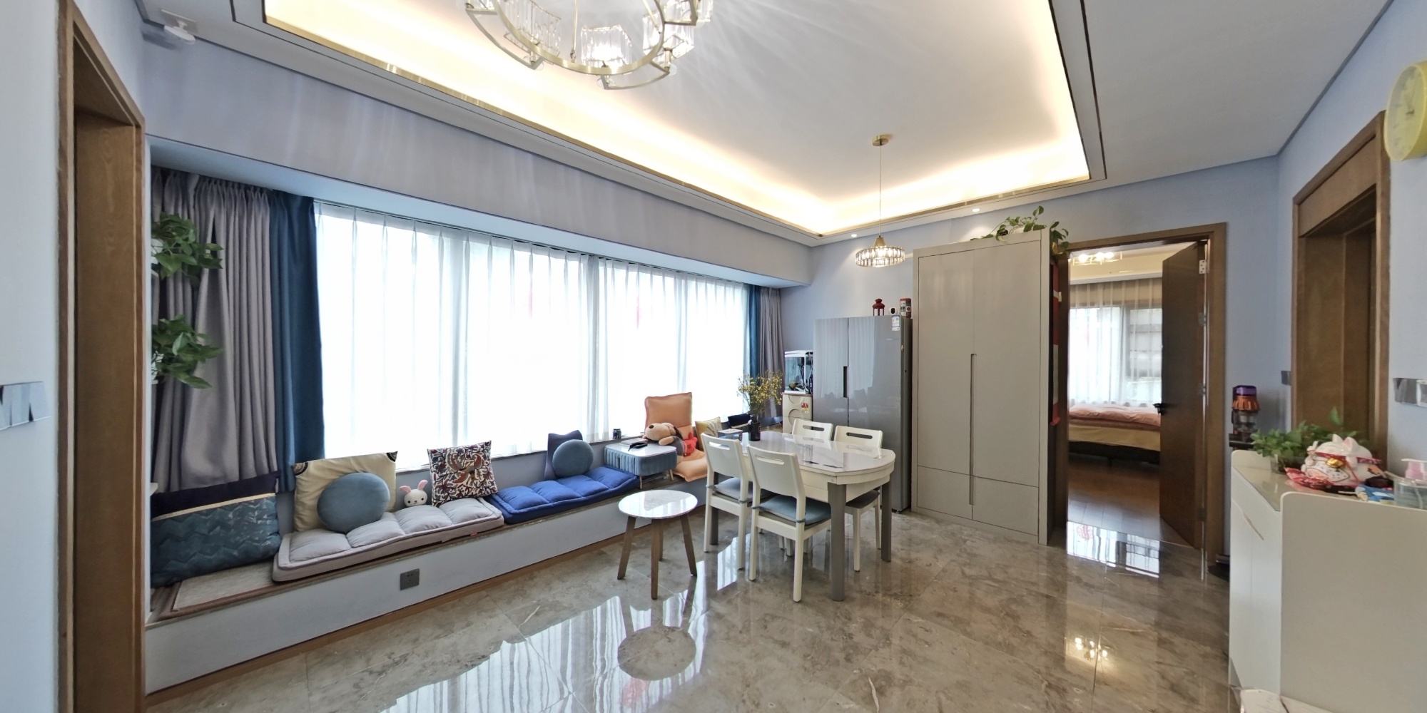 3.8米高层高,开发商精装加自住软装,东边套大飘窗