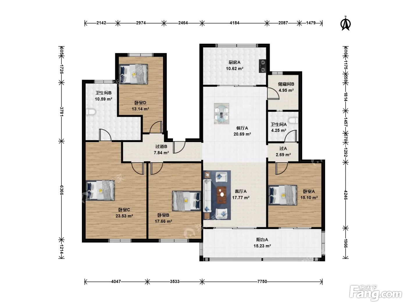 户型齐全,主打南北通透,全明格局四居