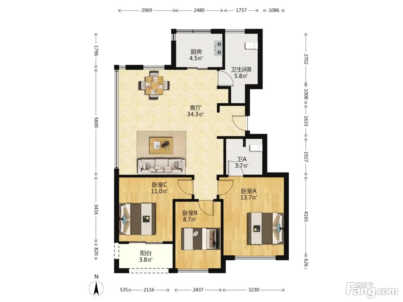 3室1厅2卫