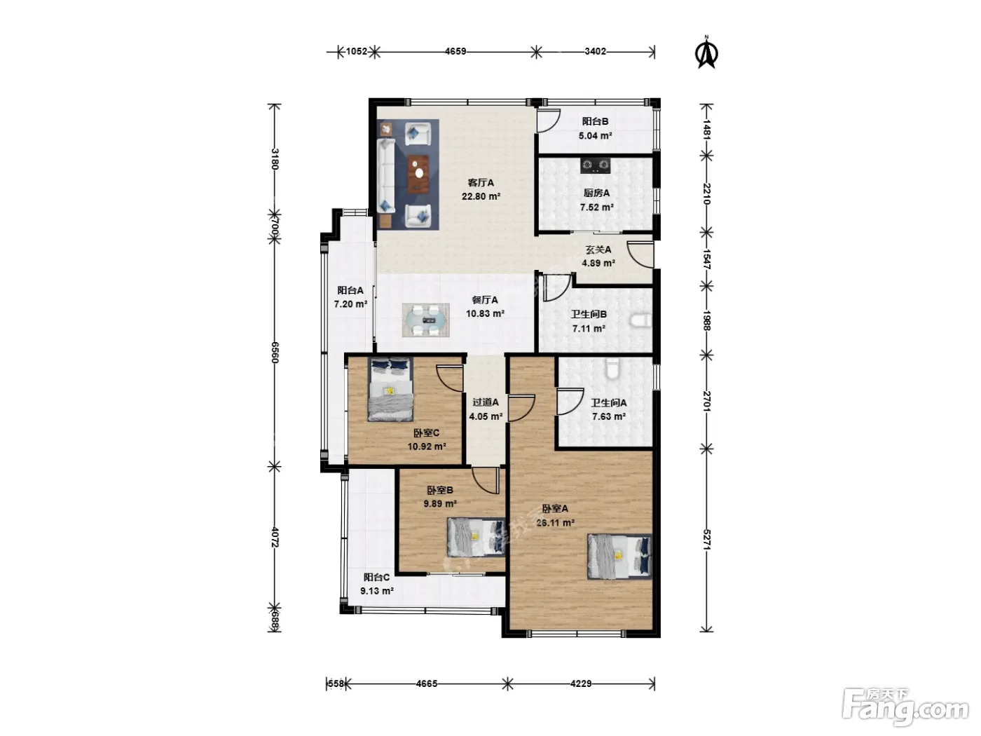 户型齐全,主打户型方正,明卫,明厨,客厅朝南,双阳台三居