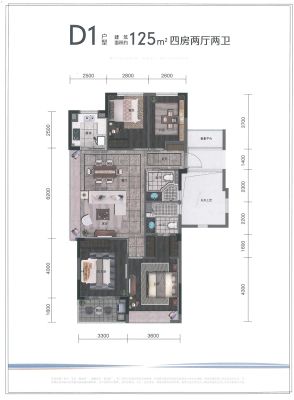户型齐全,主打户型方正,主卧带卫四居