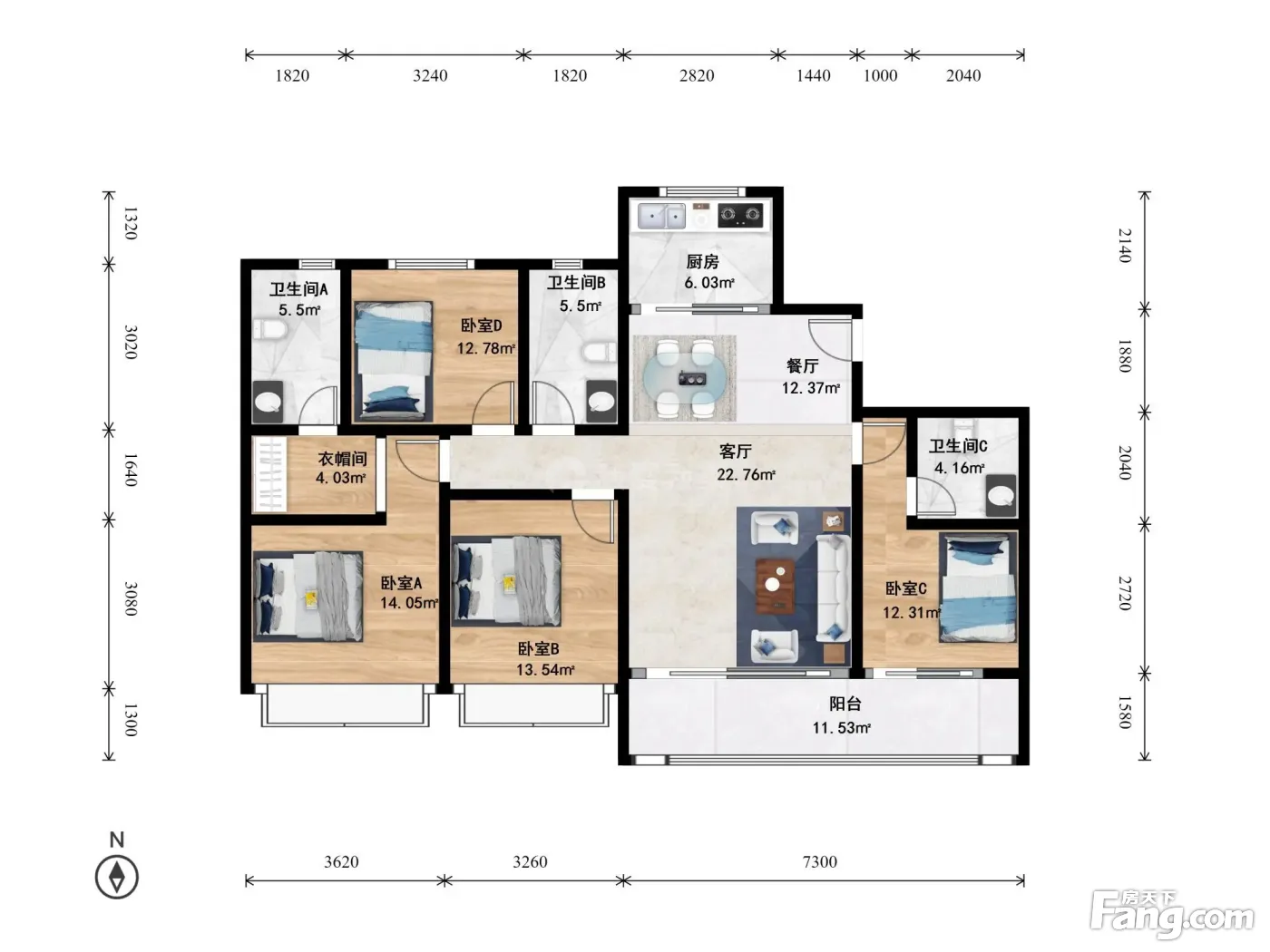 户型齐全,主打南北通透,全明格局四居