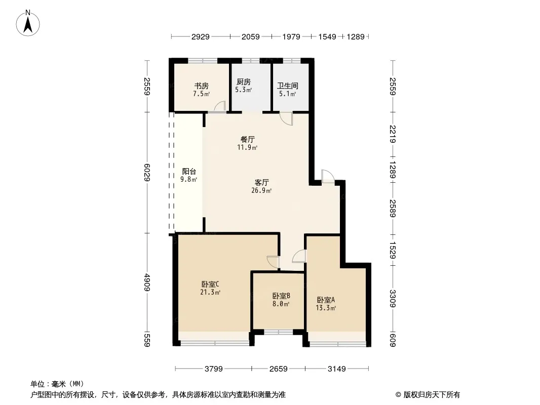*获取完整户型报告,同时会有免费语音讲解服务