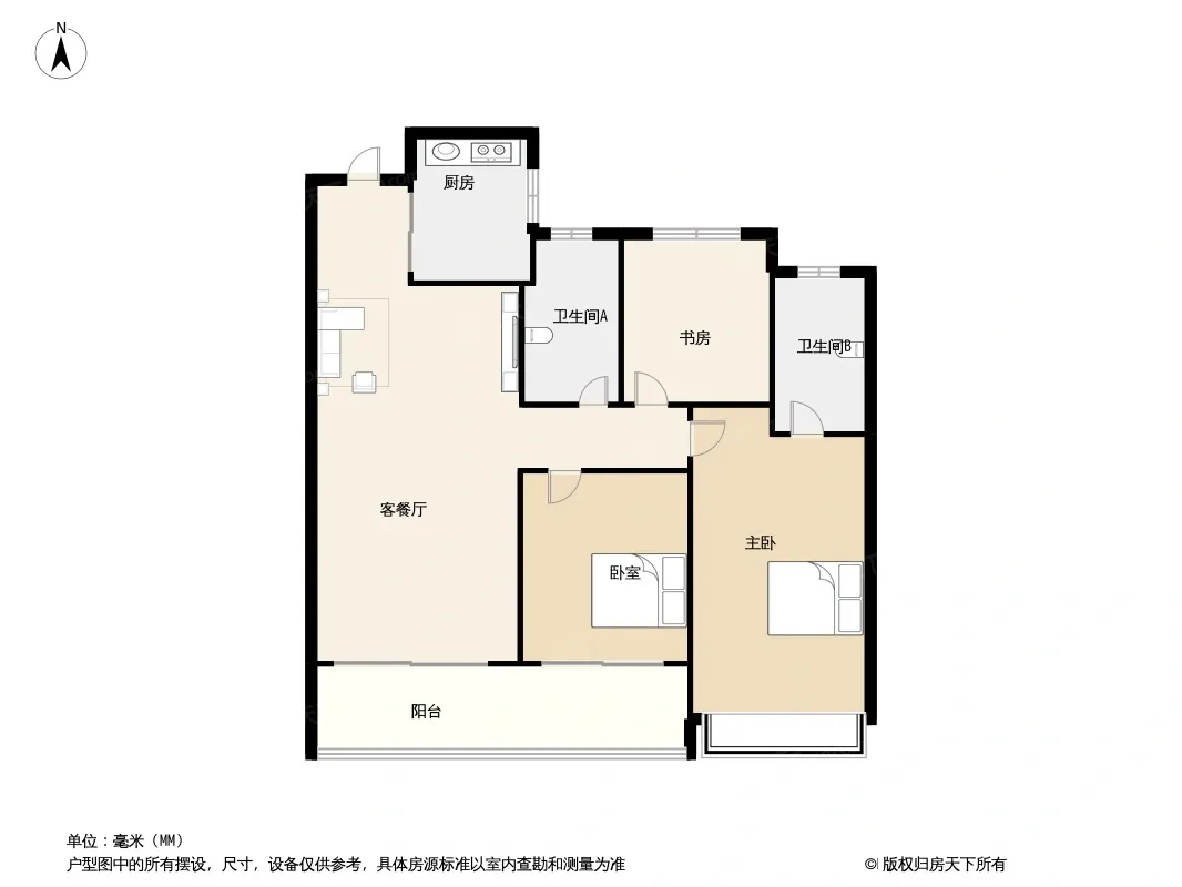 户型齐全,主打采光充足,卧室朝南三居