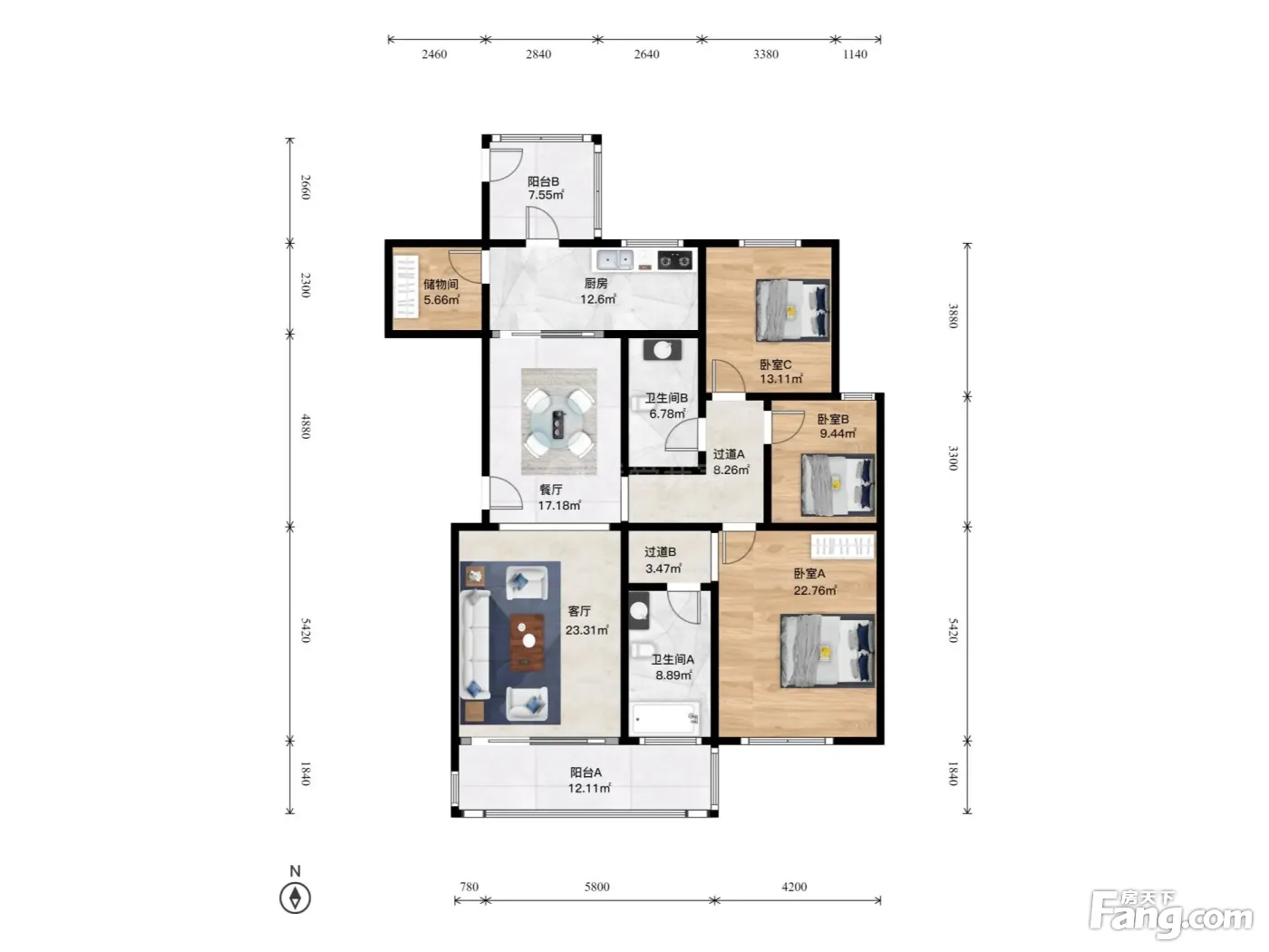 户型齐全,主打户型方正,双阳台二居