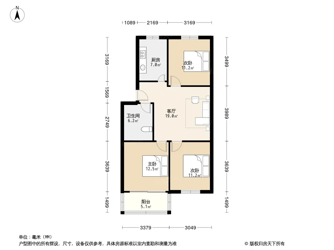 户型齐全,主打明厨,客厅朝南,双卧朝南,主卧朝南二居