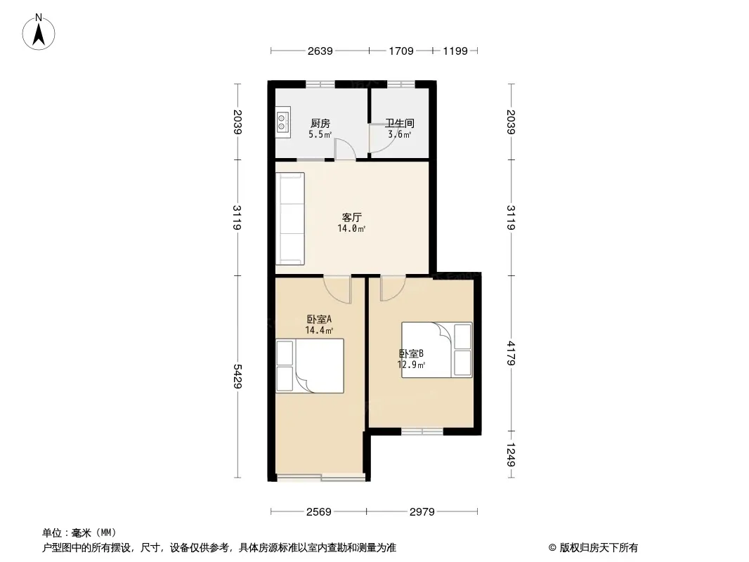 户型齐全,主打户型方正,明卫,明厨,客厅朝南二居