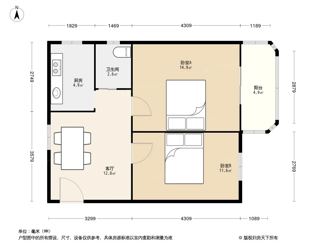 户型齐全,主打户型方正,明厨,客厅朝南二居