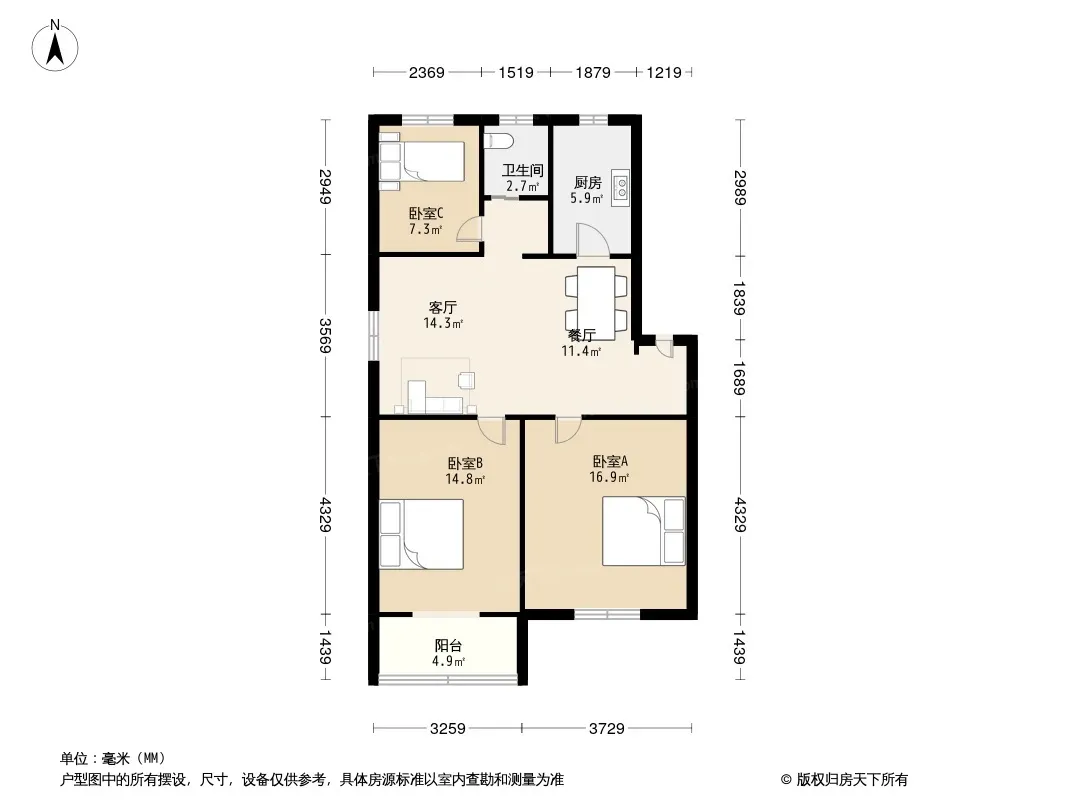 户型齐全,主打户型方正,明卫,明厨,主卧朝南三居