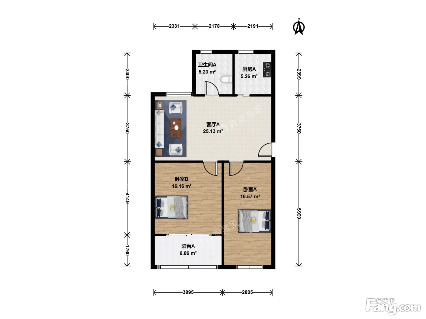 两房朝南,客厅朝北,全明户型。