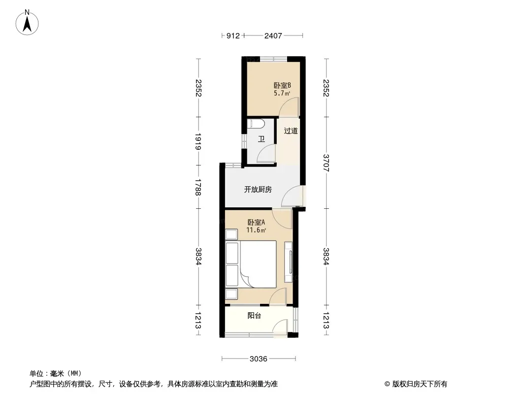 户型齐全,主打户型方正,明厨,明卫,客厅朝南,全明格局,主卧朝南二居