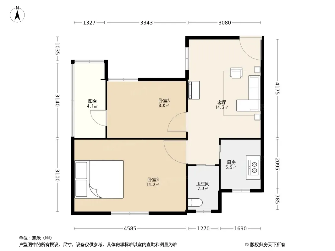 户型齐全,主打户型方正,明厨,明卫,客厅朝南,全明格局,主卧朝南二居
