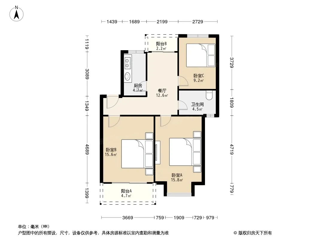 户型齐全,主打户型方正,明卫,明厨,客厅朝南二居