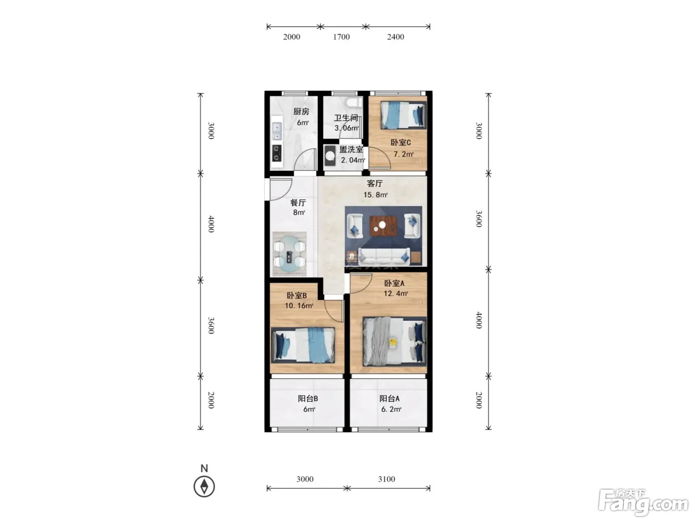 户型齐全,主打户型方正,明卫,明厨,客厅朝南,全明格局,主卧朝南二居