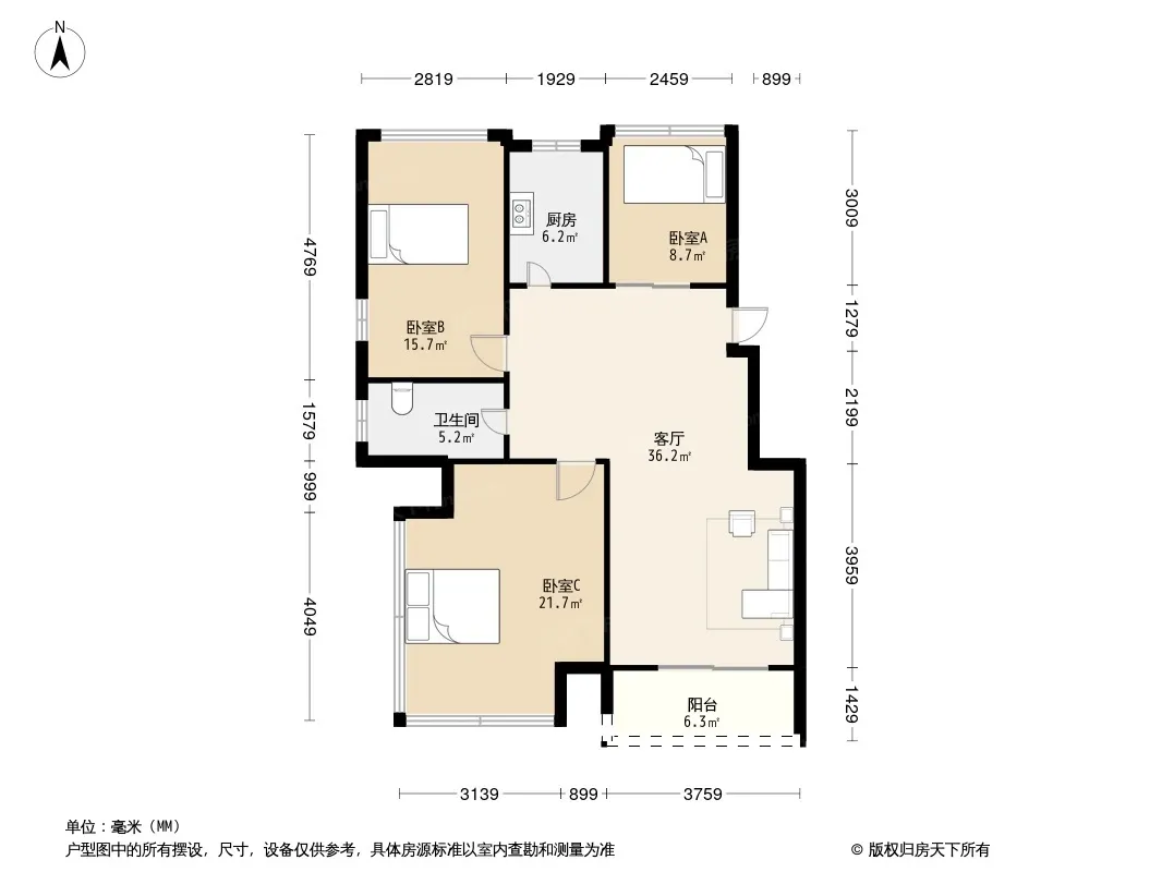 户型齐全,主打户型方正,明厨,明卫,主卧朝南三居