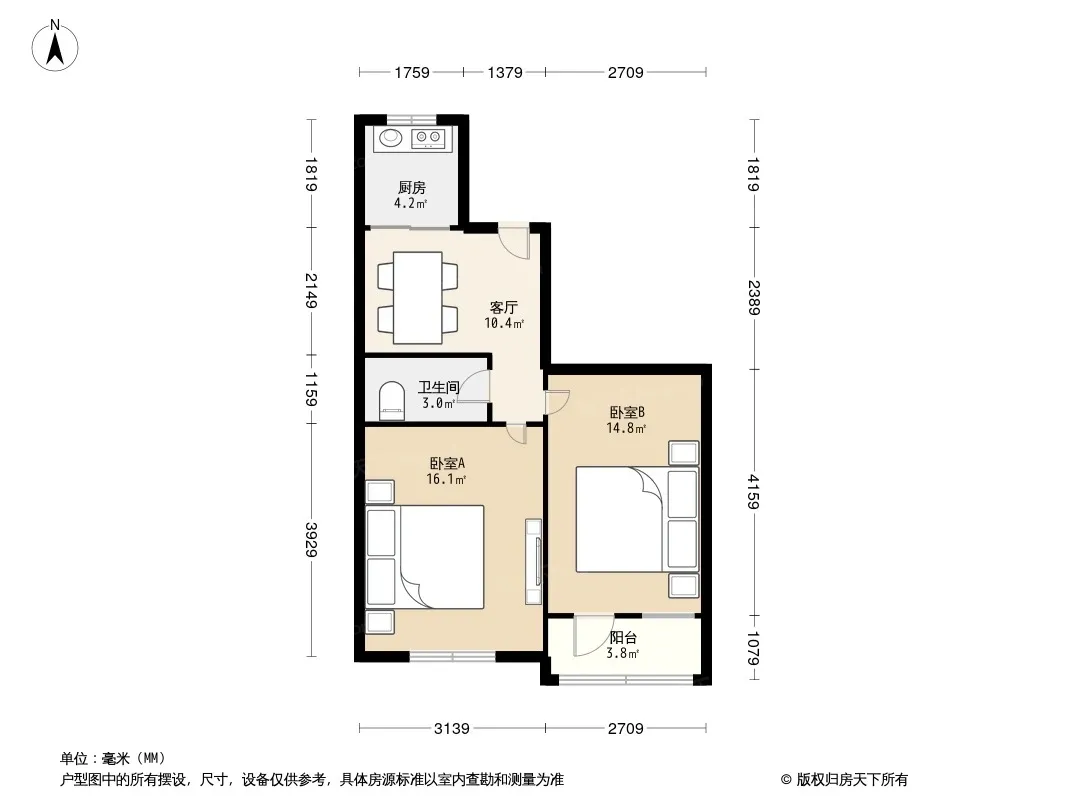 户型齐全,主打户型方正,明厨,主卧朝南二居