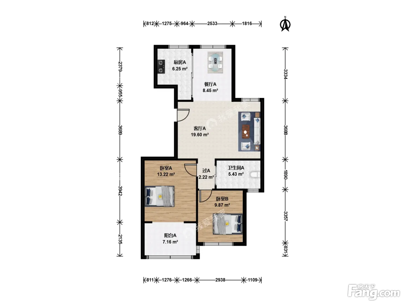 户型齐全,主打户型方正,明厨,客厅朝南二居