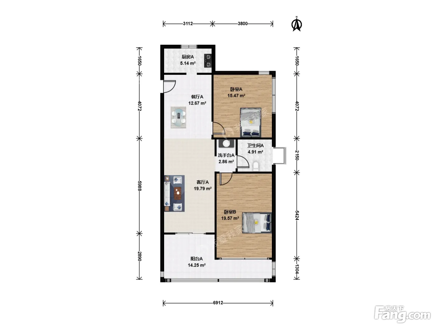 户型齐全,主打户型方正,明卫,明厨,客厅朝南,主卧朝南三居