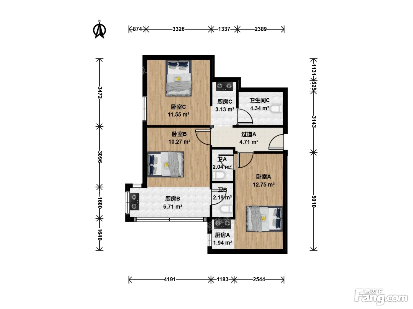 2室1厅3卫