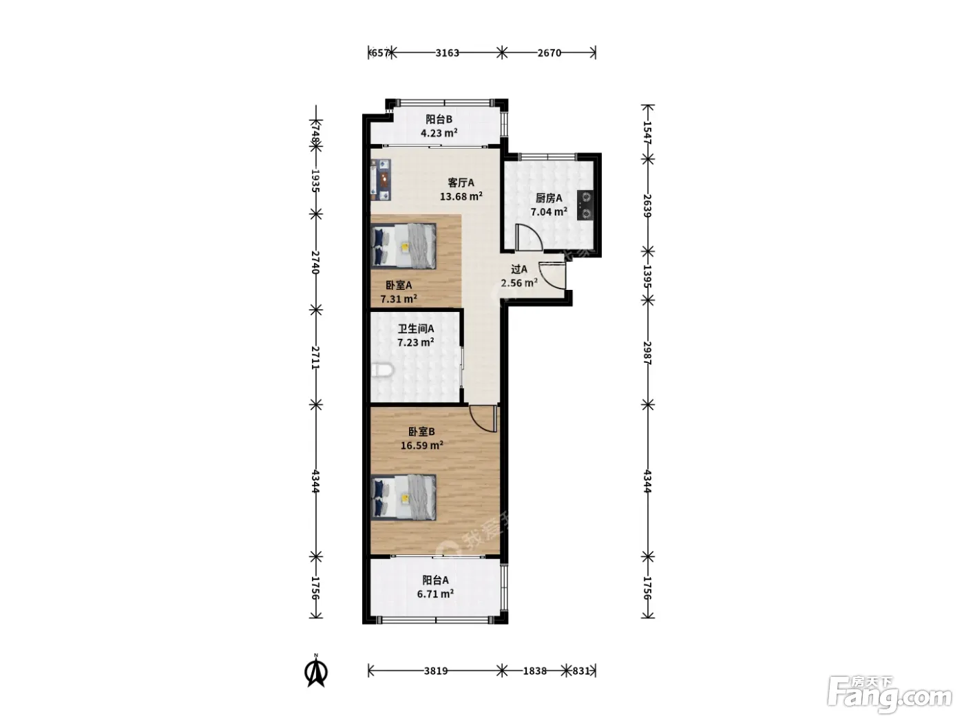 户型齐全,主打户型方正,明厨,主卧朝南二居