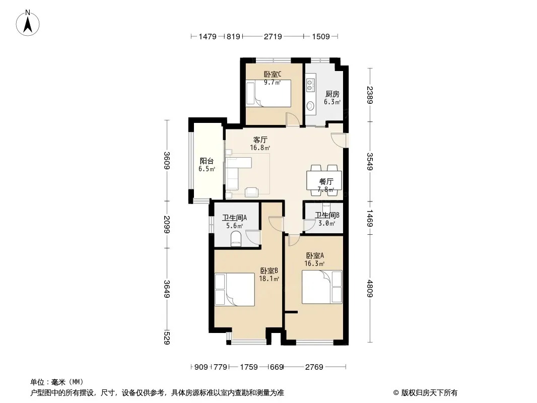 户型齐全,主打露台三居