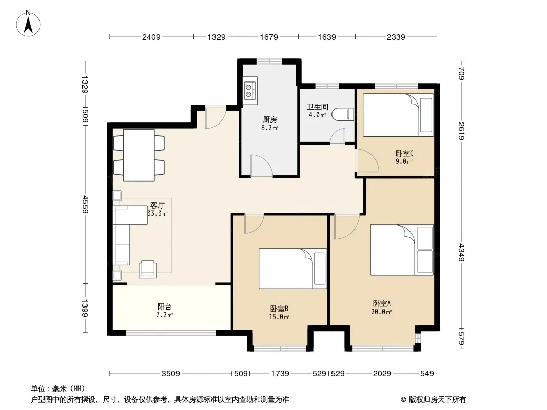 户型齐全,主打露台三居