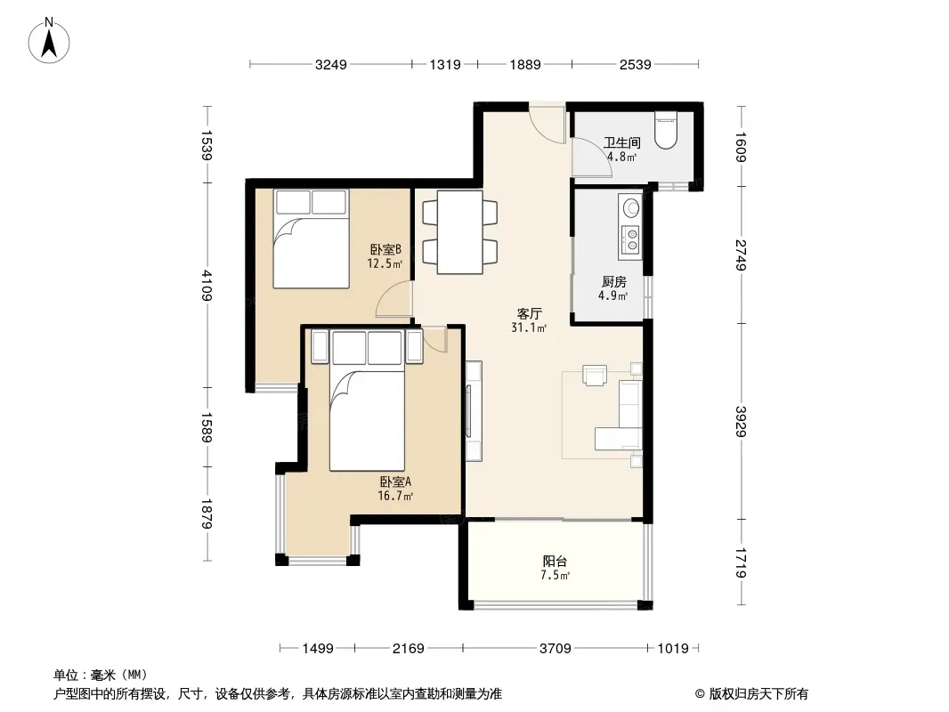 户型齐全,主打户型方正,明厨,客厅朝南二居