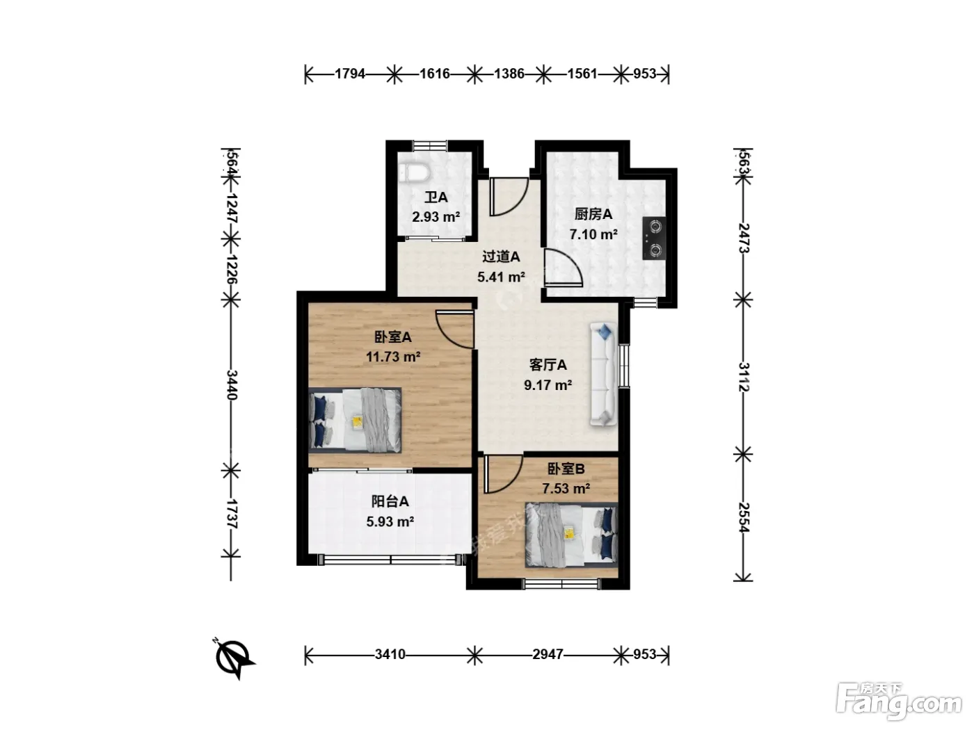 户型齐全,主打户型方正,明厨,明卫,客厅朝南二居