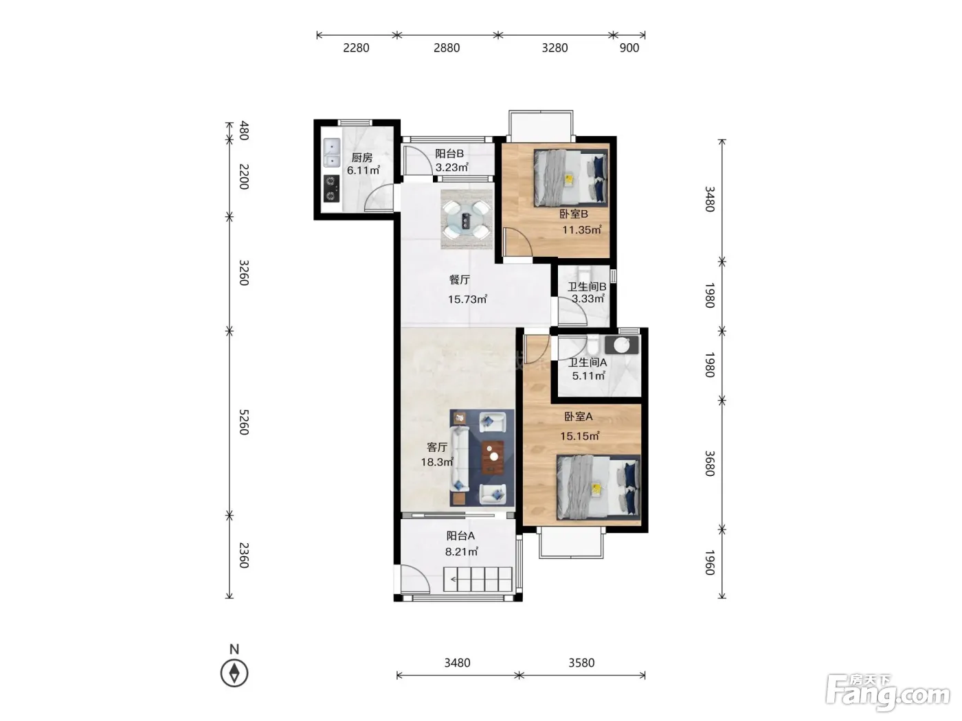 一楼带地下室80方 南北通户型 无增值税 3房1卫户型