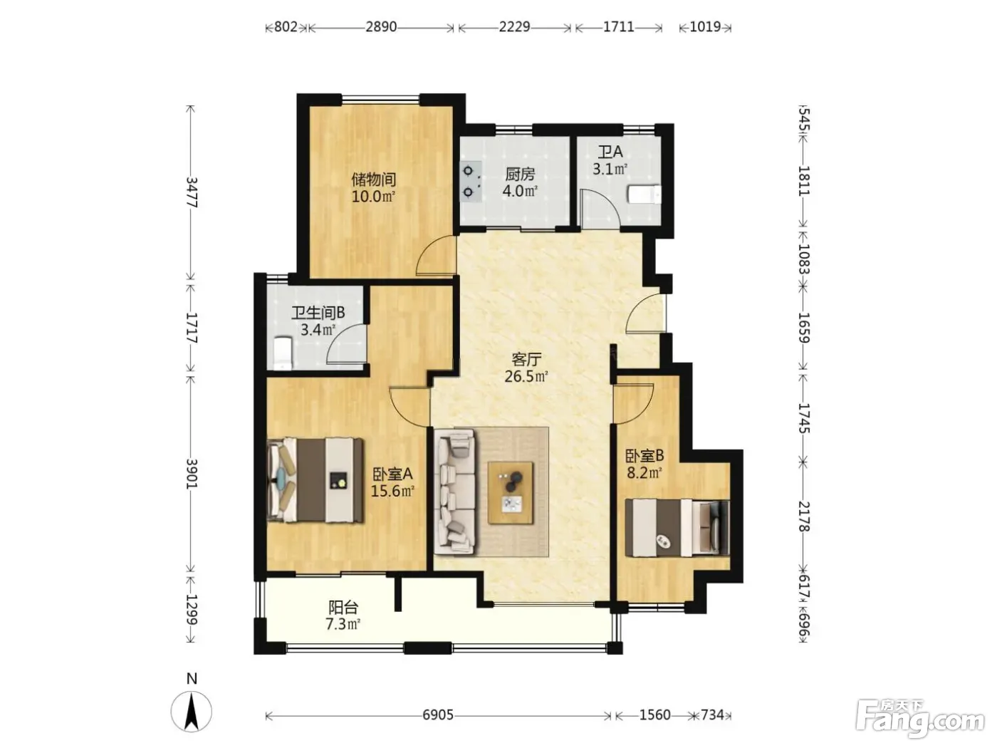 三房两卫双阳台,小高层得房率高,随时看房