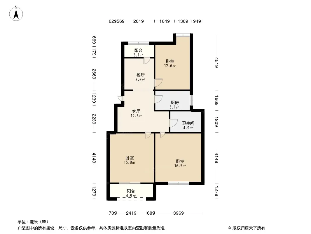 户型齐全,主打明卫,双卧朝南,主卧朝南三居