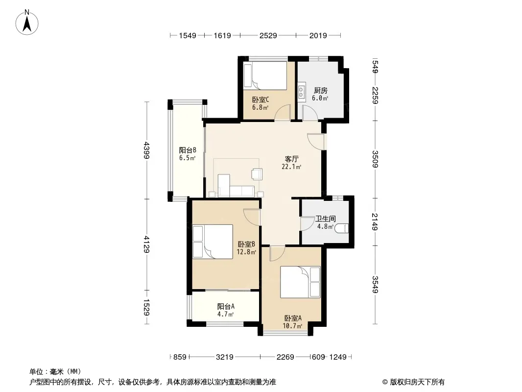 户型齐全,主打户型方正,明卫,明厨,主卧朝南三居