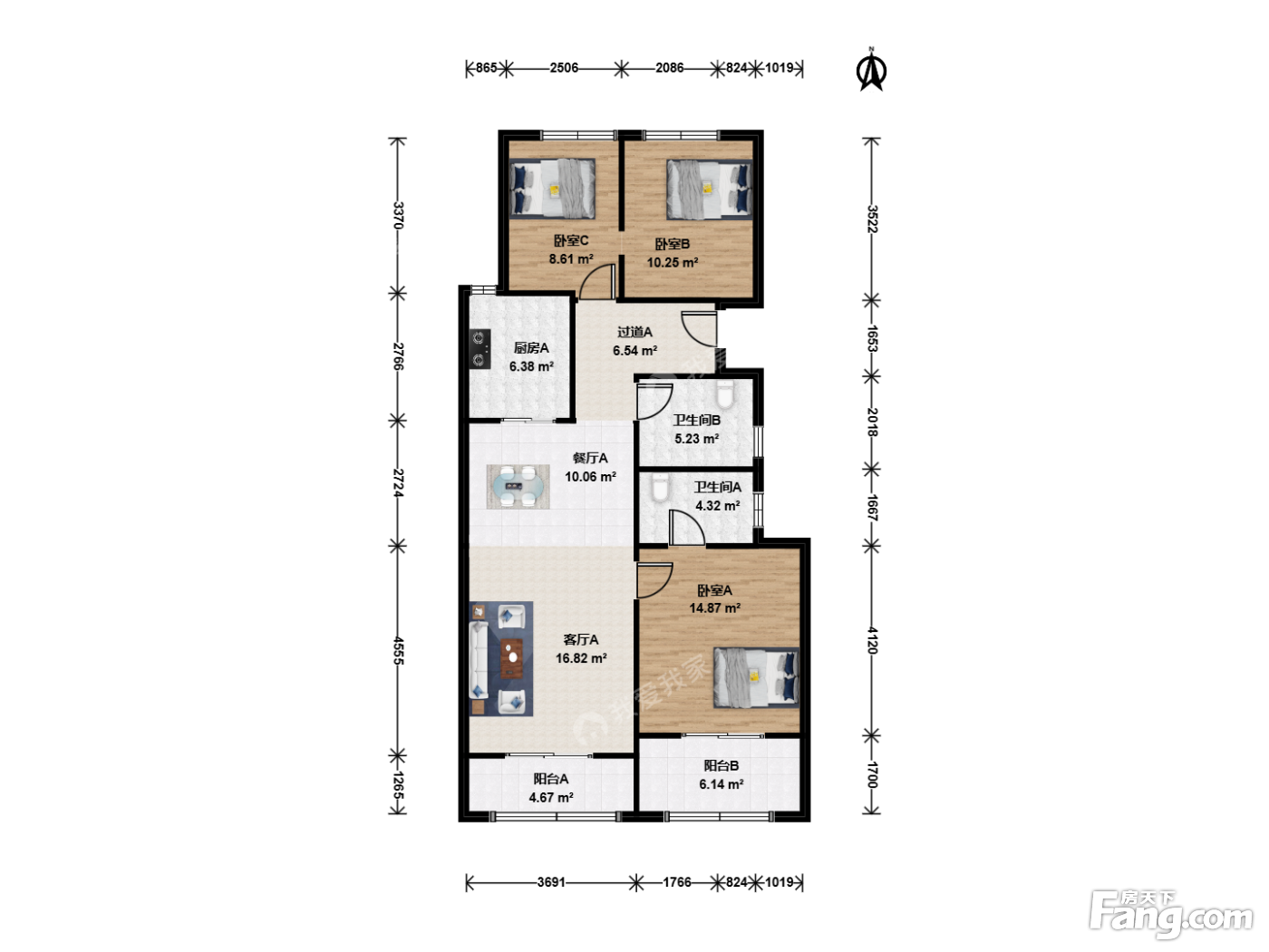 户型齐全,主打明厨,明卫,双卧朝南,主卧朝南三居