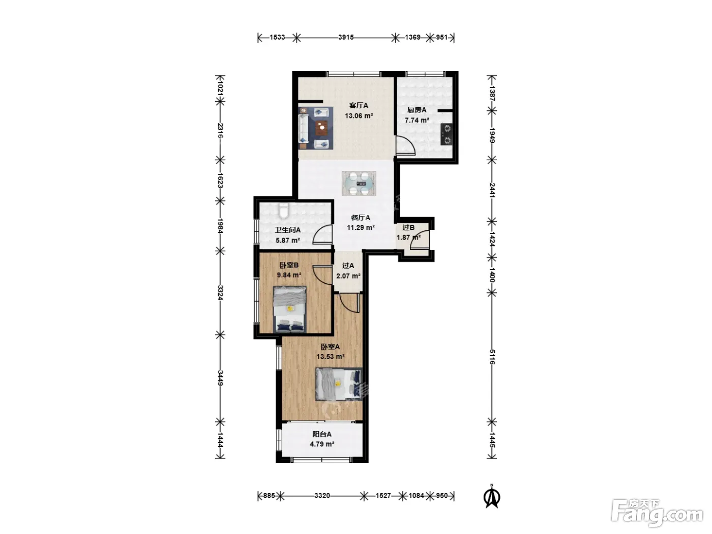 户型齐全,主打明卫,明厨,客厅朝南,双阳台二居
