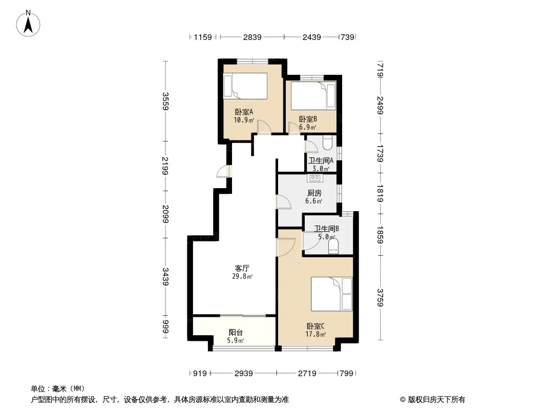 户型齐全,主打户型方正,明卫,独立衣帽间三居