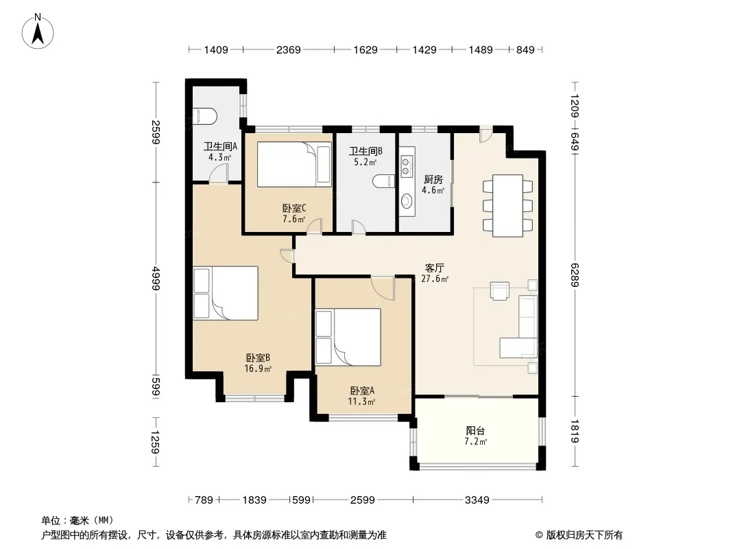 户型齐全,主打户型方正,明卫,明厨,客厅朝南,全明格局,主卧朝南三居