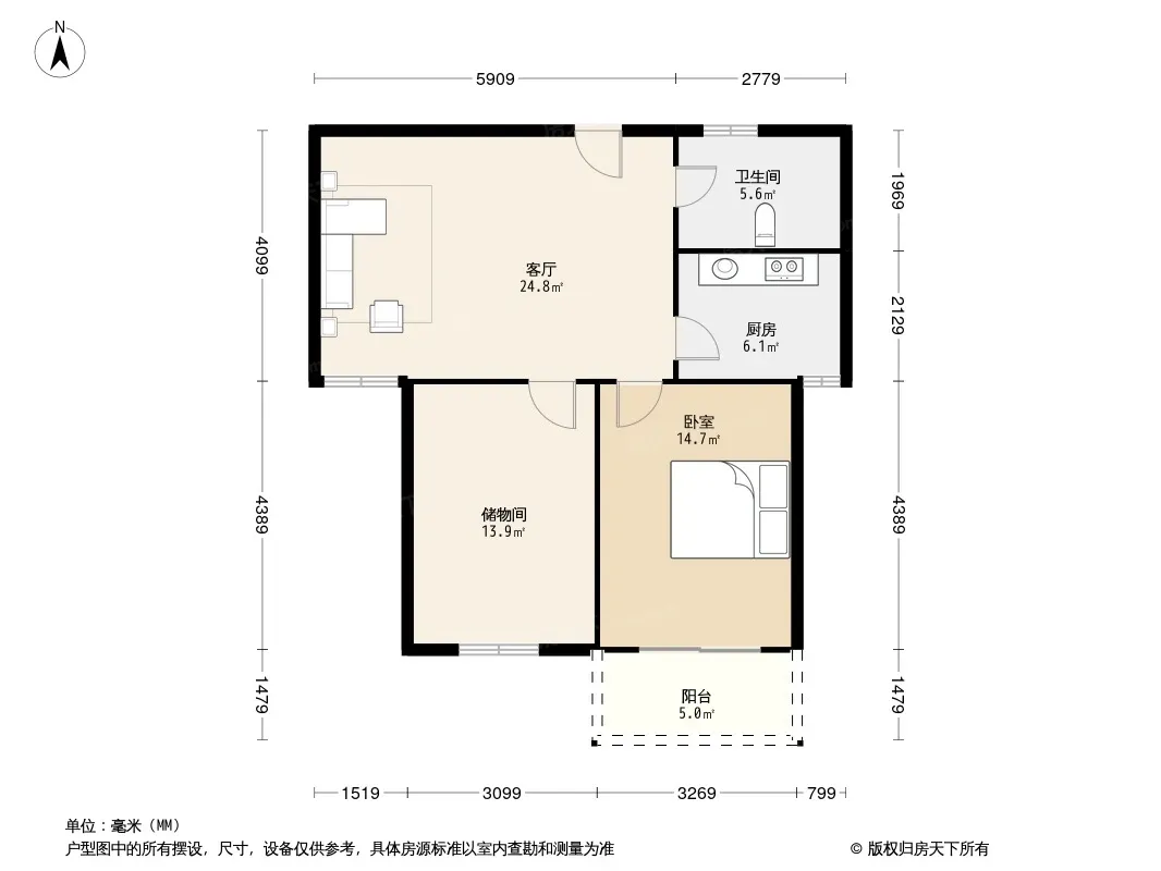 户型齐全,主打明卫,明厨,客厅朝南二居