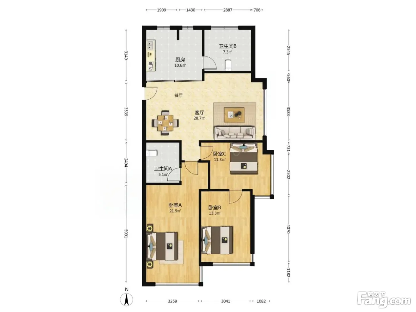 户型齐全,主打全明格局,户型方正,卧室朝南三居