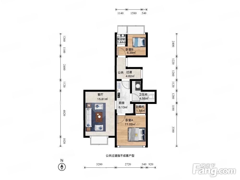 户型齐全,主打明厨,双卧朝南二居