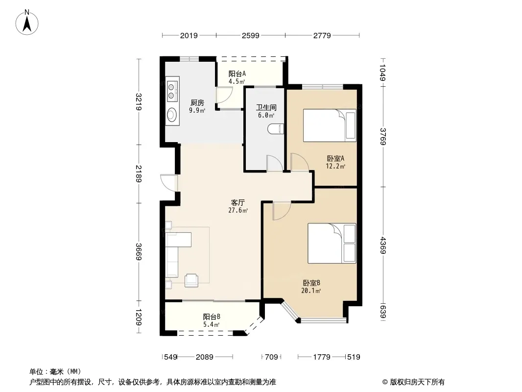 户型齐全,主打户型方正,明厨,双阳台,主卧朝南二居