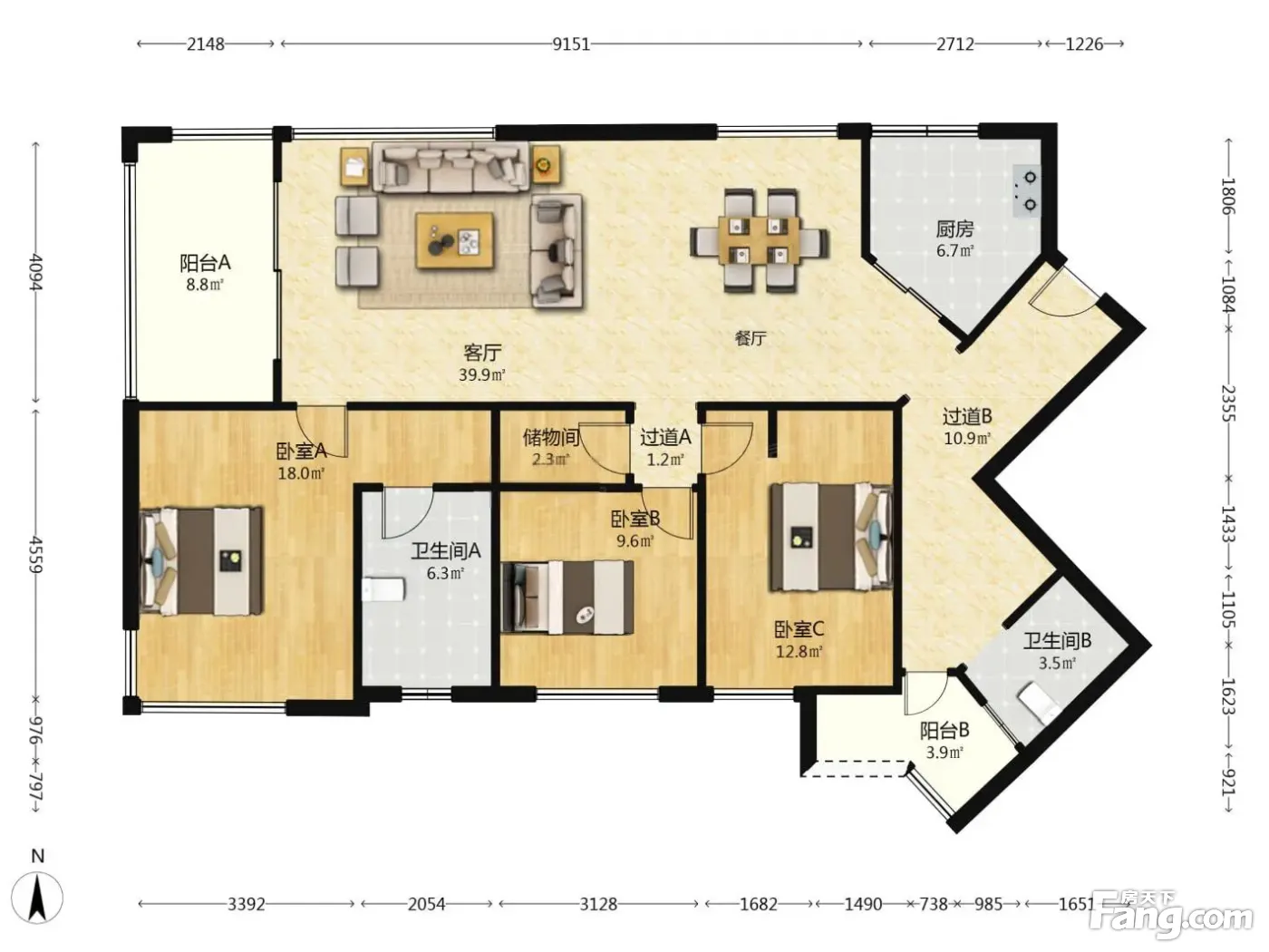 3室1厅2卫