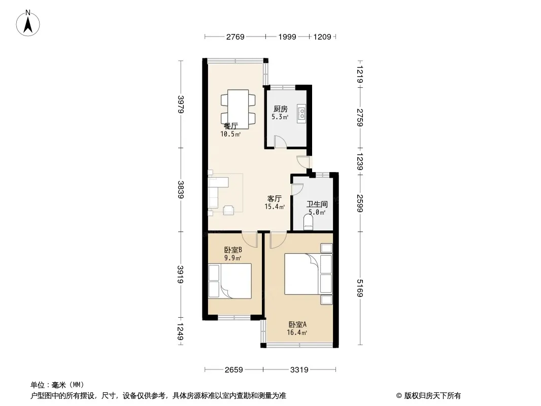 户型齐全,主打明厨,明卫,客厅朝南,全明格局二居